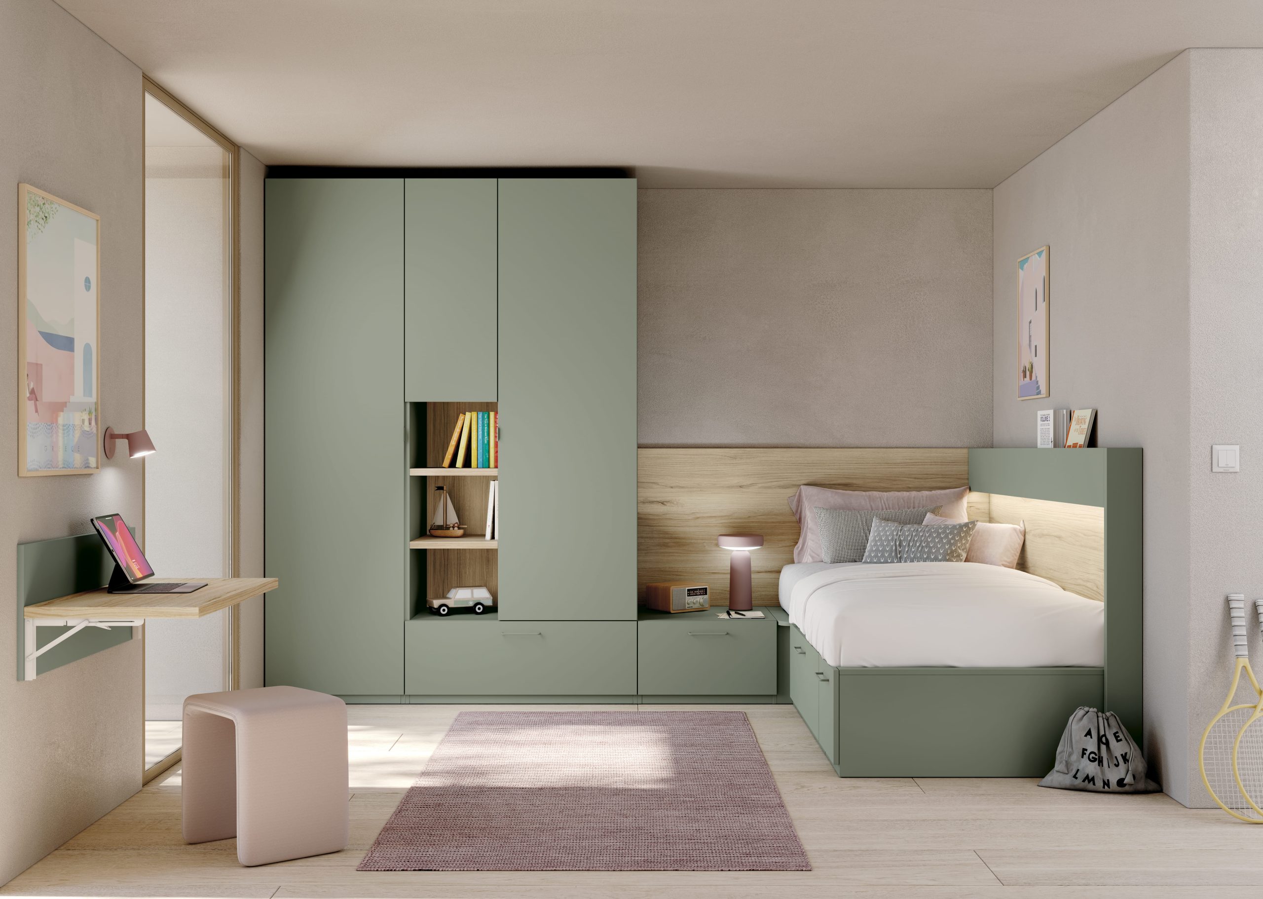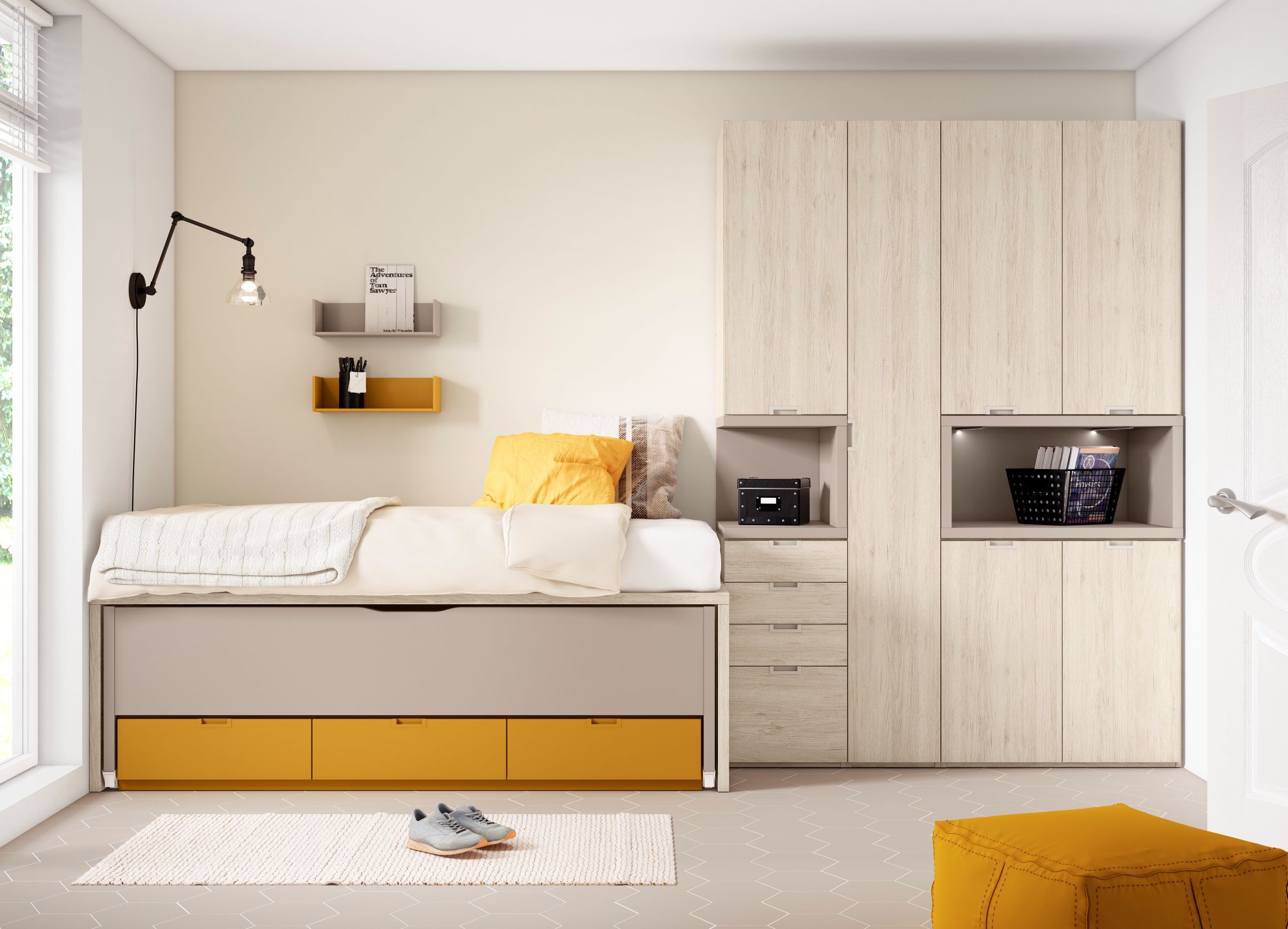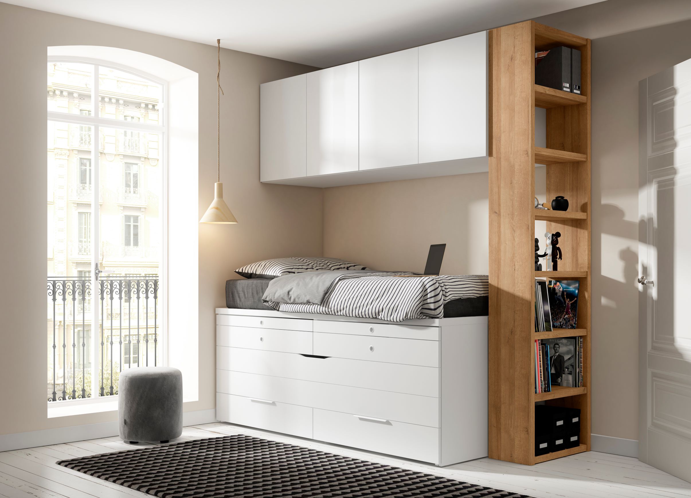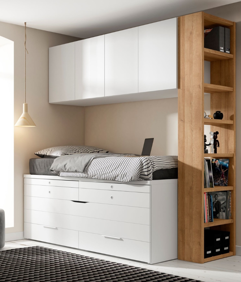 - Optimiza el espacio ofreciendo 2 camas y capacidad de almacenaje