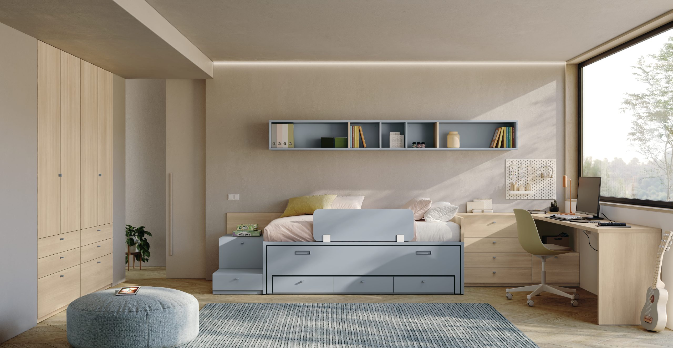 Es la protagonista de tu habitación juvenil, se trata de un mueble que consta de dos camas y cajones (2,3 o 4)